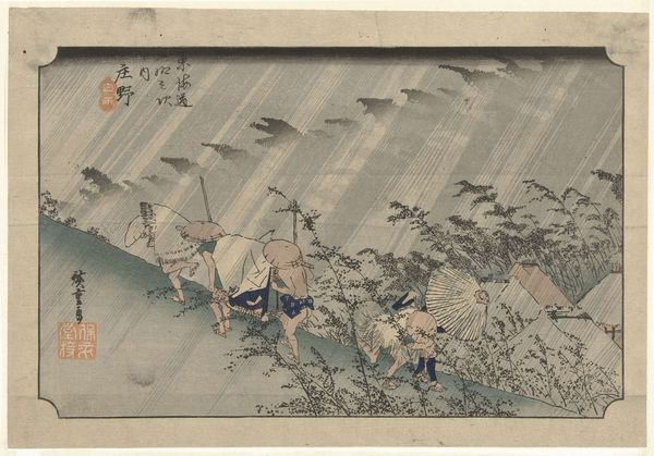 Utagawa Hiroshige made this woodblock print, “Driving Rain at Shono,” with ink and colors on paper. Woodblock printing is a labor-intensive process. Each color requires a separate block, carved by hand with specialized tools. The striking diagonal rain, the blurred figures struggling against the wind, and the muted colors evoke the harshness of the journey. The texture of the paper adds depth and a tactile quality to the scene, emphasizing the wetness and the rough terrain. Japanese prints were made through collaborative workshops, involving the artist, block carver, and printer. The level of detail and precision speaks to the skill of the artisans involved, and to the high level of specialization within the craft system. These prints were made for mass consumption, and were a product of a highly organized commercial enterprise. Paying attention to materials, processes, and social context enhances our appreciation of this artwork. It challenges the boundaries of traditional art history, by highlighting the intersection of craft, design, and materiality.