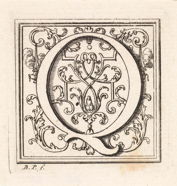 Editor: So, this engraving, "Roman Alphabet letter O with Louis XIV decoration," dates from between 1700 and 1733, and it was made by Bernard Picart. It strikes me as quite elaborate, especially for what is ostensibly just a letter! How do you interpret this work? Curator: Well, as a materialist, I’m immediately drawn to the process and context. Consider the labor involved in producing such a detailed engraving. Each line, each flourish meticulously etched, suggests a significant investment of time and skill. We must look at the political climate under Louis XIV. How does this visual vocabulary connect with the regime's production and consumption? Editor: So, the very act of creating such a decorative letter could be seen as a reflection of the values of the time? The Baroque style emphasizes ornamentation and detail; how does that relate to power structures? Curator: Precisely. Think about the intended audience and the function of this letter "O". Was it purely decorative, or did it serve a propagandistic purpose, reinforcing notions of royal authority through visual excess? The choice of materials - the paper, the ink, the engraved plate - all speak to a specific mode of production and dissemination. Could we draw connections between printmaking processes and their influence in propagating the Baroque? Editor: That makes me wonder about accessibility. Engravings could be reproduced, making this image potentially more widely available than a unique painting. But were they truly accessible to all? Curator: Excellent question. We must examine the economic and social factors surrounding print consumption during this period. While engravings were more accessible than unique artworks, literacy and affordability still limited their reach. These limits remind us that art objects do not always challenge structures of power by disrupting artistic standards, practices, distribution, and accessibility, among other possible ways. Editor: I see now how focusing on the material aspects—the how, the why, and the for whom—reveals so much more than just aesthetic qualities. It opens up a dialogue about social dynamics. Curator: Exactly. By considering the material conditions of its creation and reception, we gain a deeper understanding of its cultural significance and lasting impact.