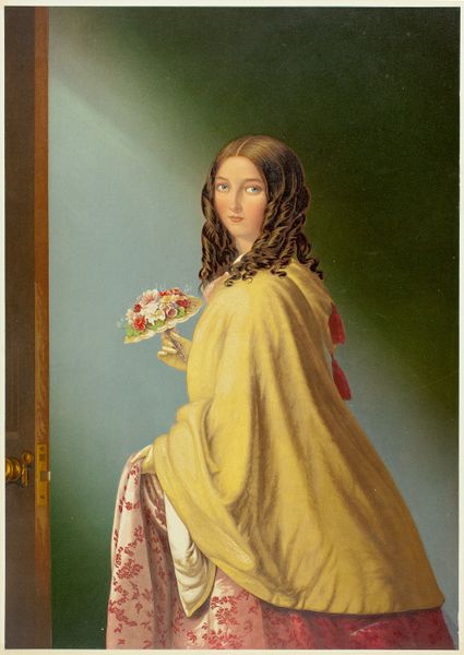 Editor: This is Charles Cromwell Ingham's "Little Girl with Flowers (Amelia Palmer)," painted between 1827 and 1830. I'm really struck by the sort of... innocent stillness. She seems almost dreamlike. What do you see in this piece? Curator: Ah, Amelia, caught in time! You know, I see a portrait striving to be more. It wants to be a landscape, a genre scene... a whisper of Romanticism too. She's framed, isn’t she, by that theatrical dark foliage. It's almost as if the forest itself is presenting her to us. A bit staged, wouldn't you agree? Editor: I do! It's like a theatre set. Curator: Exactly! Look at how brightly lit she is in comparison. What do you make of those flowers? Are they simply decorative? I wonder... Editor: Hmmm… the flowers almost seem to overflow from her basket, which strikes me as maybe symbolic? It could mean a lot of things. Curator: Precisely! This reminds me, by the way, of stepping into a long-lost memory. Almost haunting, yes, but tender at the same time. Does that make sense? Editor: Definitely! I see that in her face and the way the flowers are slightly faded in colour too. Curator: Yes, that’s it exactly! It leaves me wondering about Amelia, her life... a story just beyond our grasp. What do you make of that tension? Editor: I see what you mean! It gives the piece a layer of complexity I hadn't noticed. I think it’s beautiful. It also makes me want to know more about her, so I could put it in context. Curator: Agreed. Each glance tells a new story. The interplay between her youthful glow and the setting is really quite stunning. A perfect harmony, really, a gentle dance!