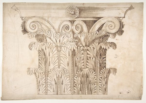 Editor: Here we have a design for a decorative frieze, estimated to be from between 1820 and 1855, attributed to an anonymous artist. It's a pencil drawing, quite linear and geometric, but also undeniably decorative. I find it a bit rigid, maybe even austere. What jumps out at you when you look at this design? Curator: Austere, yes, but also pregnant with possibility. A mere fragment of a grand vision, a whisper of neoclassicism. The unyielding geometry softened by the organic forms, like nature tentatively reclaiming the perfectly ordered world of man. Editor: I see what you mean about nature reclaiming it, with the stylized leaf and shell motifs. Curator: Precisely. It is like peering into the dreams of an architect, catching glimpses of the adornments that will eventually populate vast halls. What strikes me is how a simple line, repeated just so, can conjure such depth, such an almost palpable sense of volume. Doesn't it almost feel like we could reach out and touch it? What do you think is its intended purpose in real life? Editor: A decorative molding for the top of a wall, perhaps? Something like that, to add visual interest to a room. Curator: Maybe it is designed as a print, like for wallpaper, but one that elevates itself to be more of an intricate artwork than decoration. The more you look, the more intricacies become available. A perfect execution of geometric patternmaking with neoclassical style! What have you come to learn? Editor: I was initially unimpressed, but I am able to notice that even with its restrictions in form, the artist conveyed interesting movement and layering of objects. It almost breathes with artistic skill. Curator: Absolutely! Its seeming simplicity hides a profound understanding of form and light. An exquisite reminder that beauty often lies in the details.