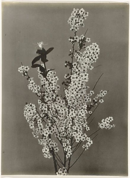 Editor: This is Richard Tepe’s "Tak met bloesem," a print dating between 1900 and 1930 currently at the Rijksmuseum. It’s so delicate; I’m really drawn to the subtle tones and textures. How do you interpret this work? Curator: Tepe's photograph resonates within the context of pictorialism, a movement that consciously sought to elevate photography to the status of art. The choice of subject matter – blossoms – links it to broader artistic trends depicting nature's beauty. Consider how museums and galleries at the time played a role in promoting this aesthetic. Editor: So it’s less about documenting nature, and more about artistic expression? Curator: Precisely. Think about the political undertones too. The idealized vision of nature provided a sense of escape and harmony in a rapidly industrializing world. The way imagery gets created, displayed and received has profound social consequences. How do you see that playing out here? Editor: I guess I hadn’t thought about it in that way. I was just appreciating the beauty! But you’re right, it is a very controlled, deliberate kind of beauty. It’s a curated version of nature. Curator: Exactly. And recognizing that allows us to see how the public role of art, even something as seemingly simple as a blossom photograph, connects with the bigger historical picture. Editor: I’ll never look at botanical photography the same way again! It’s fascinating to consider the social forces at play in even the most serene images.