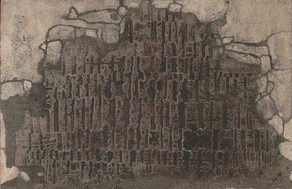 Karlo Zvirynsky made this artwork called Tin with, well, tin, and other materials; it’s dated 1959. I’m just fascinated by how Zvirynsky assembled these pieces, giving each its own little stage to perform on. The texture’s incredible – you can almost feel the cold, hard metal. Notice how the light catches on the hammered surfaces, creating a play of shadows that gives the whole thing a strange, almost ghostly presence. Look at the way he's arranged the components, some vertical, some horizontal, and consider how this arrangement affects the work's overall rhythm. The individual pieces are all so different, yet they come together to form a unified, almost architectural structure. I'm reminded of Schwitters' collages, but with an added layer of industrial grit. It's like Zvirynsky is taking the detritus of the modern world and turning it into something beautiful and thought-provoking. Art, right? It’s an ongoing conversation, a constant reinterpretation of what’s come before.