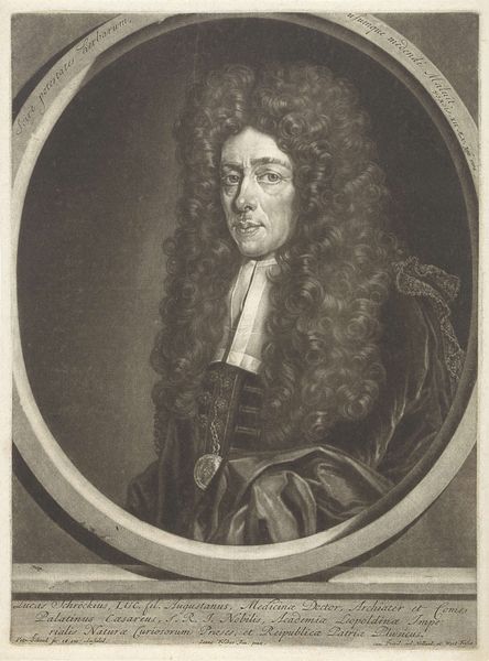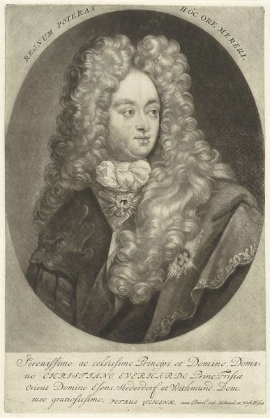 This is a self-portrait by Jacob Gole, created sometime between 1670 and 1724 using the mezzotint technique. Gole, born in Amsterdam, was a printmaker, publisher, and art dealer during the Dutch Golden Age, a period defined by unprecedented economic prosperity and cultural flourishing in the Netherlands. This portrait offers a glimpse into the social performance of identity of the time. The elaborate wig, the lace cravat, and the draped fabric are all markers of status. There is a theatricality to the way Gole presents himself. Self-portraits such as this were not just about capturing a likeness; they were about constructing an image, crafting a persona that reflected one's position and aspirations within society. Consider the power dynamics at play here. As a publisher and art dealer, Gole was part of a burgeoning art market, catering to the tastes of a wealthy merchant class. This self-portrait, then, can be seen as a form of self-promotion, a way of aligning himself with the refined tastes of his clientele. It embodies the intersection of art, commerce, and identity in the Dutch Golden Age.