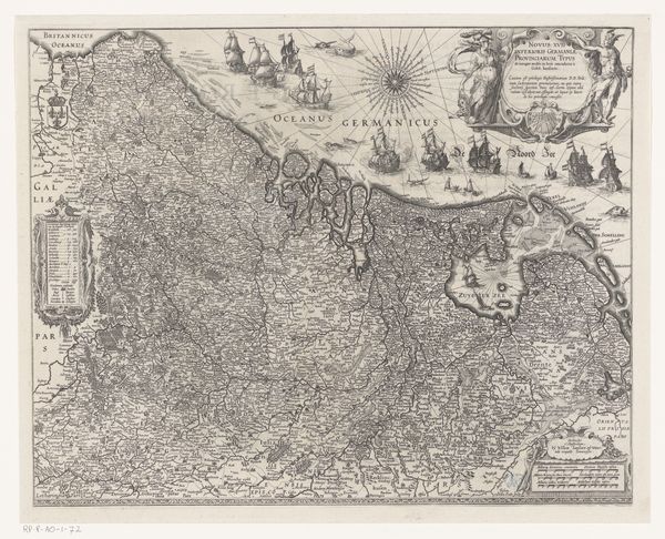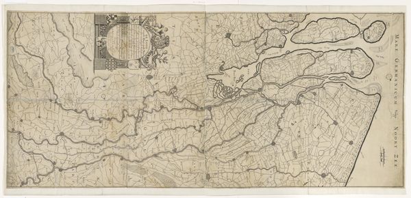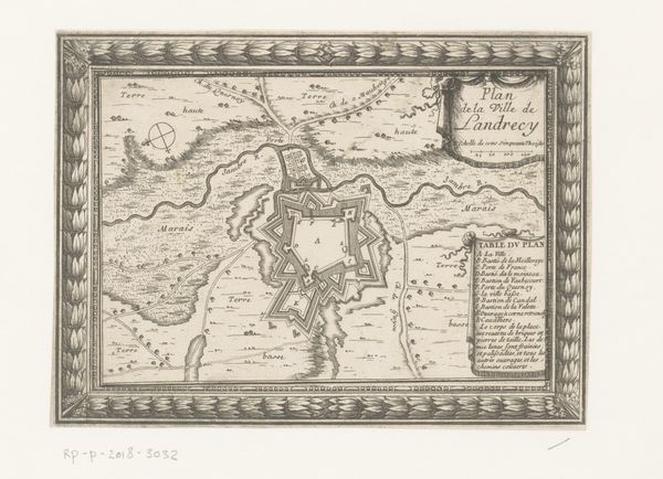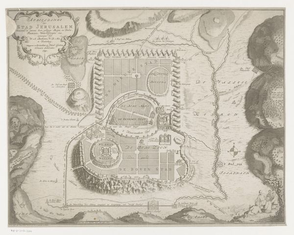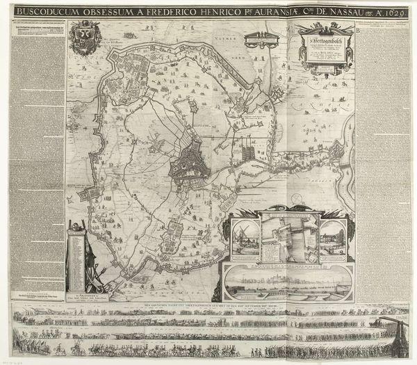 This is a print made by Abraham Dircksz Santvoort, commemorating the siege and capture of Hulst in 1645. The printmaking process, often involving etching or engraving on a metal plate, allowed for the mass production of images and the dissemination of information. The fine lines and details of the map underscore the engraver’s skill in translating a bird’s-eye view of Hulst and its surrounding landscape. This required careful planning and execution, indicative of a time when cartography was both a science and an art form. Such prints weren't just decorative; they were strategic tools used to communicate military successes and political power. The labor-intensive process of creating these prints contrasts sharply with the speed at which they could be distributed, influencing public perception and solidifying national identity. By considering the material and process, we gain insight into the complex relationship between art, politics, and society in 17th-century Netherlands.