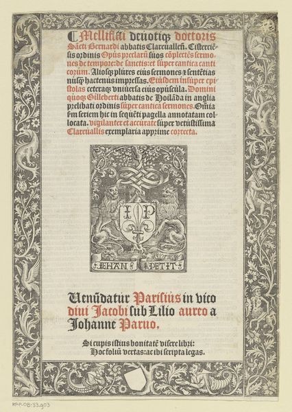 Editor: So, this is "Ein new getruckt model Büchli...Title page" by Johann Schönsperger the Younger, created in 1529. It’s a woodcut and ink on paper. What strikes me is the stark contrast between the dense blackletter text and the aged paper. What can you tell me about it? Curator: Looking at this title page, I’m immediately drawn to the means of its production. This isn't just about beautiful lettering; it's about the mechanization of text through the woodcut process. How do you think this printing process impacted society at the time? Editor: Well, obviously, printing made texts more widely available. So, how does this artwork challenge the boundaries of ‘high art’ versus craft, then? I mean, it is functional. Curator: Precisely! Think about the labor involved. Carving the woodblock, setting the type, operating the press—it’s a very hands-on, laborious process. It directly challenges our traditional notions of art being solely about individual genius and aesthetic beauty. The materials, the ink, the paper: each held a certain value, subject to trade, import, and manufacture. The typography is an aesthetic choice, yes, but also deeply entwined with practicality and the distribution of knowledge. The spread of vernacular typography spoke to social classes, occupations, and access. What are your thoughts on how such images helped create a common culture or even supported individual social mobility? Editor: I guess it allowed more people access to participate in scholarly and commercial networks. This wasn't about painting for a wealthy patron; it was about producing for a wider market. That makes me think differently about its purpose. Curator: Exactly! The implications are immense. It also shifts our focus from the singular artwork to the network of makers, distributors, and consumers who all contributed to its meaning and influence. Editor: I've definitely learned to think more about how materials and processes shape art, not just the final product's appearance or intention. Curator: And understanding the material conditions in which art is created is critical to understanding its historical significance.