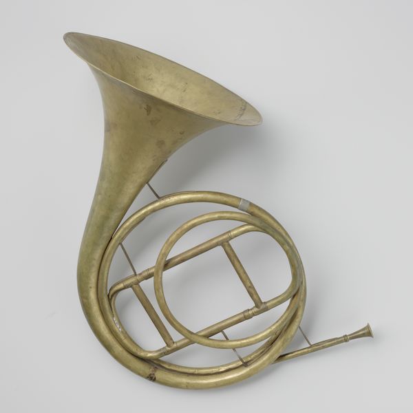 This is a brass Bass Fluegel Horn in B-flat created by Ferdinando Roth sometime in the 19th century. The warm golden hue of the brass immediately catches the eye. Look at how Roth uses circular forms to define its structure. The large circular loop dominates the center, acting as a visual anchor. From this, smaller curves branch out, creating a dynamic interplay between rounded and linear elements. The cylindrical valves create vertical lines, contrasting with the overall circularity. The instrument embodies a fascinating tension between functionality and form. The shape isn't purely decorative; it's dictated by the physics of sound. Yet, Roth's craftsmanship elevates the instrument to an object of visual art. The horn operates as a semiotic object, with its gleaming brass surface and intricate curves suggesting not just musicality but also cultural meanings. It is a convergence of art, science, and culture.