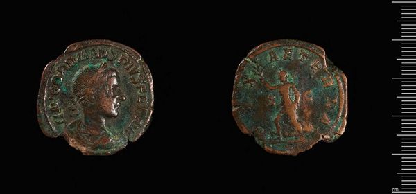Curator: This is a coin from Mesembria under Gordian III and Tranquilina, currently residing at the Harvard Art Museums. The coin weighs just over 13 grams. Editor: It's remarkable how much history is etched onto such a small, unassuming object. I immediately think of power and legacy. Curator: Absolutely. Coins served as potent symbols of imperial authority. The dual portrait likely symbolizes a dynastic alliance or perhaps the deification of Tranquilina alongside Gordian. Editor: I see a deliberate effort to establish legitimacy, projecting an image of a stable, unified empire, particularly to those who handled the coin daily. Curator: Indeed, the imagery speaks volumes about the propaganda strategies employed by Roman rulers to maintain control and shape public perception. Editor: To hold this coin is to touch a piece of carefully constructed narrative, a message sent across centuries about power, image, and control. Curator: A pocket-sized monument, if you will. Editor: Precisely, and one that still resonates with echoes of a distant past.