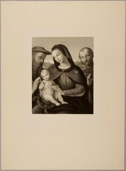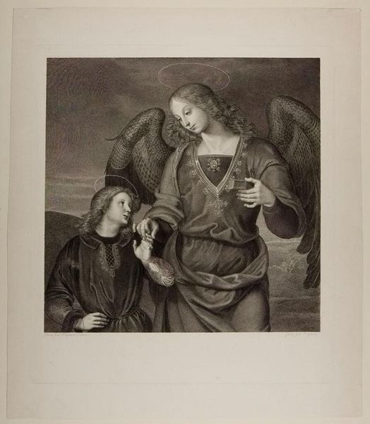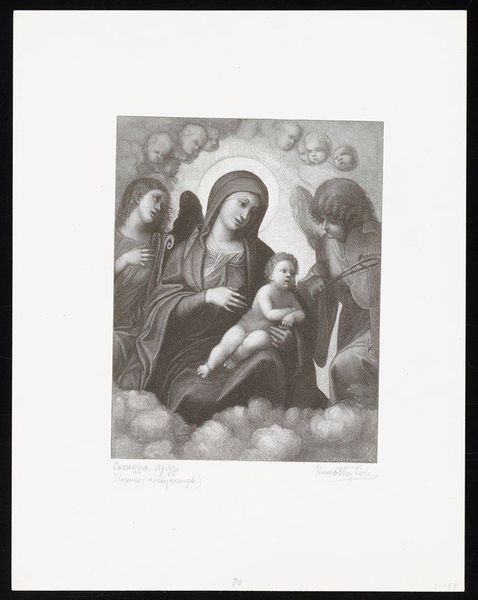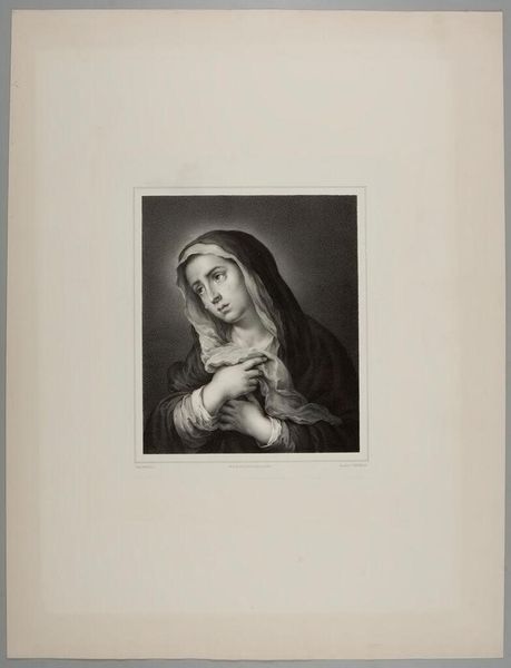 Editor: This is "Mater amabilis" by Faustino Anderloni, housed at the Harvard Art Museums. The engraving is strikingly delicate. What can you tell me about it? Curator: Look at the *means* of production: Anderloni, active during a period of immense social upheaval, is using engraving, a technique requiring specialized labor, to reproduce an image. This challenges notions of unique artistic genius. Editor: So, it’s less about the subject and more about how it was made? Curator: Precisely! Consider the social context and who consumed these prints. How did this availability alter the perception and value of the image itself? Editor: I see. Thinking about its reproduction changes the way I appreciate the image. Curator: Exactly! We are looking at both the material and the immaterial impact here.
