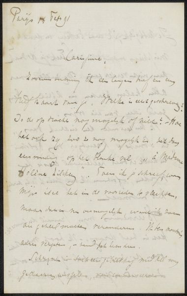 Willem de Zwart crafted this letter to Johan Philip van der Kellen in 1890 with ink on paper. The visual experience of the artwork is defined by the calligraphic lines of the handwritten text, arranged in a composition that balances clarity with aesthetic appeal. The color is subdued, with the dark ink contrasting against the off-white paper, lending it a timeless quality. The structure of the letter reflects a delicate interplay between form and function. The lines of text, while conveying information, also create an abstract pattern across the page, engaging with the viewer's eye. This balance mirrors the artist's broader interest in exploring the semiotic relationship between written language and visual art. Ultimately, De Zwart’s letter exemplifies how everyday communication can transcend its immediate purpose to engage with broader artistic and philosophical concerns. The artwork destabilizes fixed meanings by presenting itself as both a practical message and a thoughtful aesthetic object. It’s an invitation to reflect on the continuous re-interpretation of art as a cultural and philosophical site.