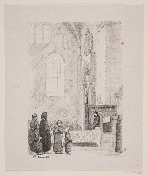 Théodore Joseph Cleynhens created this print of a side chapel in the Sint-Jacobskerk at an unknown date. Here, Cleynhens depicts a scene of religious devotion, with figures gathered around the altar, framed by the church’s architecture. Prints like this one played a significant role in shaping cultural and religious identities in 19th-century Europe. Made in Belgium, the image participates in the 19th century gothic revival which saw a resurgence of interest in medieval aesthetics and religious piety, often linked to conservative social and political movements. Prints like this one were often commissioned by religious institutions or cultural heritage organizations and were meant to evoke the grandeur of the church. To fully understand this print, one could delve into the archives of the Sint-Jacobskerk, examining the records of its artistic patronage and its relationship with the local community. This print reminds us that art is often shaped by the social, religious, and institutional contexts in which it is produced and consumed.