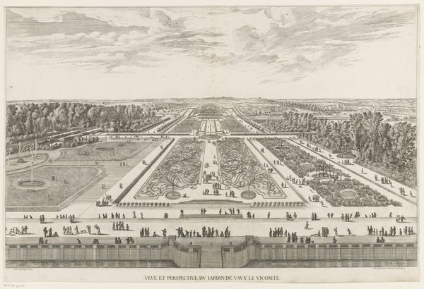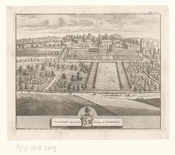 This print shows the Huis ten Bosch palace in the Netherlands and was made by an anonymous artist. The scene is presented from a bird's-eye view, a popular technique in the 17th and 18th centuries for depicting grand estates and urban landscapes. This palace had a vital role as a royal residence and a symbol of the House of Orange-Nassau. The carefully planned gardens and the architectural details reflect the desire to display power and order. The print gives insight into the social and political climate of the Dutch Republic, where art was often used to legitimize and celebrate the ruling elite. Historical records, architectural plans, and other visual representations of the time can provide a richer understanding of the intentions behind this image. By analyzing such artworks we can decode the complex interplay between art, power, and society.