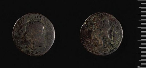 Editor: This is a Sestertius of Clodius Albinus from the Harvard Art Museums. It is small, metallic, and worn, yet you can still see the figures depicted on each side. How do you interpret this work? Curator: I'm drawn to the balance achieved within the circular format. Note the careful distribution of weight between the portrait and the seated figure. The coin's eroded surface adds another layer of complexity. Editor: What do you mean by that? Curator: The wear and tear is integral to its present form, contributing to its visual texture. It becomes part of its inherent qualities. Editor: So, the damage becomes another element of the composition. Fascinating. Thanks for pointing that out! Curator: My pleasure. The interplay of form and decay truly makes it remarkable.