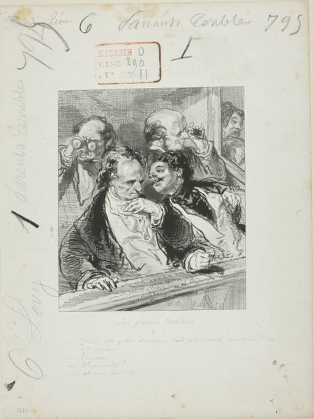 Honoré Daumier created this lithograph, ironically titled "The Recruiting Board," to be published as a print in France. The central motif is the measurement of young men against a height chart, a symbol of conscription and the dehumanizing process of turning individuals into soldiers. This act of measurement echoes across history, from ancient Egyptian depictions of scribes measuring grain to Renaissance-era anatomical studies, highlighting a perennial human impulse to quantify and categorize. Note how the figures shrink in stature and vitality as they approach the measuring stick, mirroring the diminishing spirit of those subjected to military regimentation. The scene evokes a deep psychological unease. The gaunt bodies and expressions of dread speak to the collective anxieties surrounding war and the loss of youth and innocence. The composition itself, with its rigid vertical lines and claustrophobic space, conveys a sense of entrapment. This image serves as a potent reminder of how symbols and rituals can be co-opted to serve oppressive ends, and of the enduring power of art to expose the human cost of such endeavors.