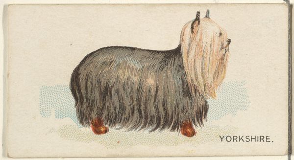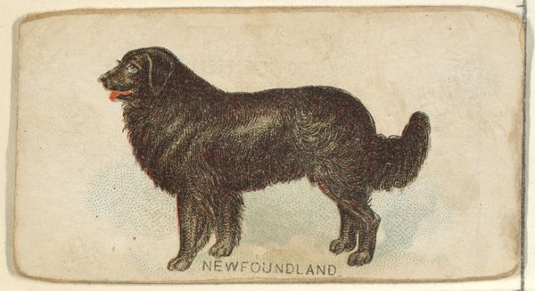 Goodwin & Company's "Retriever," part of the Dogs of the World series, presents a modest yet intriguing study in form. The lithograph, printed on a small card, features a retriever dog. The dominant visual element is the dog's silhouette, rendered in shades of brown and black, which immediately draws the eye. The composition is straightforward, emphasizing the dog's profile against a light background. Textural variety is achieved through the depiction of the dog's fur, using fine lines and varied tones to suggest depth and volume. The subtle gradations of color give the dog a lifelike presence, enhanced by the precise delineation of its form. Structurally, the artwork operates within a limited semiotic field: the dog is clearly identifiable. Yet, the choice to isolate the animal, presenting it without context, invites us to consider the sign of "dog" within a broader cultural narrative. This dog signifies a set of values and meanings that transcend its simple depiction. The image functions as a signifier, laden with cultural and historical weight, reflecting an ongoing dialogue about nature, culture, and representation.