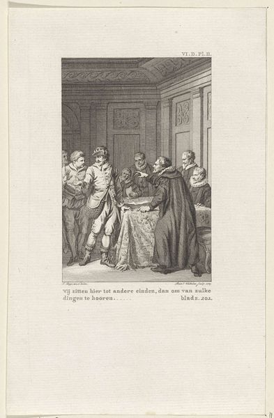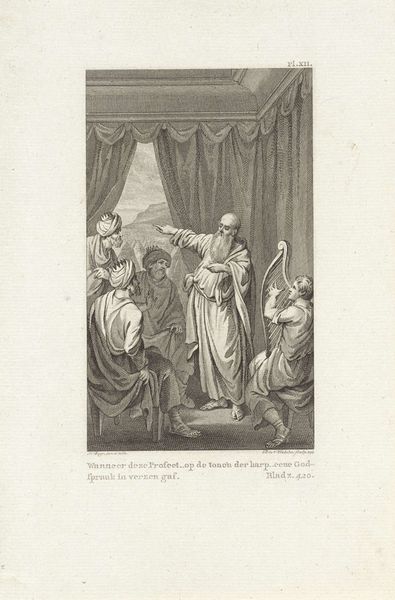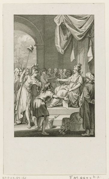 This engraving, made by Reinier Vinkeles, shows molten gold being poured into the severed head of Crassus. The printmaking process, involving meticulous carving into a metal plate, mirroring the alchemical process of refining raw metal into a valuable, sought-after substance such as gold. Vinkeles was a master of line, and the cross-hatching here gives a sense of weight and volume, even shadow. It all adds to the drama of the moment. Consider how the hot metal becomes a brutal indictment of Crassus's greed, punished by the very thing he craved. It's a stark reminder of the relationship between wealth, power, and the darker side of human ambition. The act of pouring gold in this way isn't just about destroying a person, but about making a powerful statement about the corrupting influence of wealth. Ultimately, this print transcends mere historical record. It's a carefully crafted object that invites reflection on the material and moral cost of human desire.