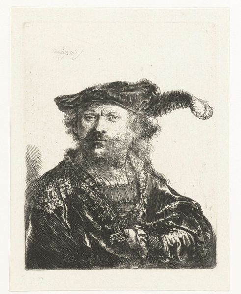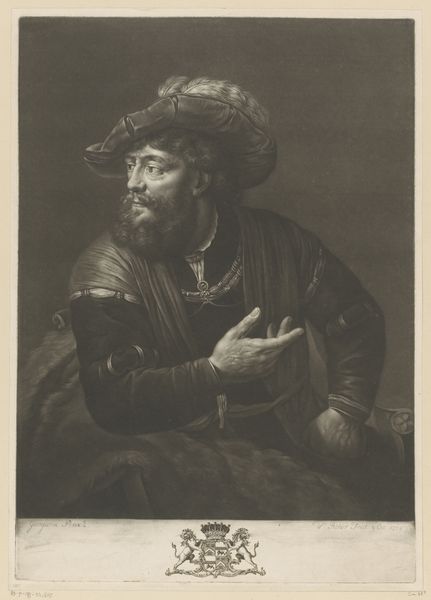 Richard Parkes Bonington rendered this portrait in ink on paper; its monochrome palette and textured surface invite close inspection. The composition, dominated by a bearded man in elaborate historical dress, strikes a balance between detailed rendering and suggestive abstraction. Observe how Bonington uses washes of ink to create a sense of depth and volume. Light and shadow play across the subject's face and clothing, defining form while also dissolving into ambiguous shapes. The man's gaze, intense yet unfocused, hints at an inner world that remains elusive. Bonington's technique here reflects a broader artistic interest in exploring the expressive possibilities of the sketch. His loose brushwork and emphasis on tonal contrasts prefigure later developments in modernist painting, where the act of creation becomes as important as the subject matter itself. Consider how Bonington destabilizes traditional portraiture by prioritizing the materiality of his medium. This drawing functions as a meditation on the nature of representation and the complexities of historical identity.