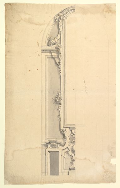 This is a design for one half of an altar with a pilastered wall at the right, made by an anonymous artist. It's a sketch, an architectural drawing outlining a proposal. These drawings offer us a glimpse into the world of artistic production and the institutions that supported it. The altar, a central element in religious practice, was often commissioned by wealthy patrons or religious orders, solidifying their power through such patronage. Looking at the altar's ornate details, we can see the cultural values of the time reflected in the visual language of religious expression. The pilastered wall indicates that this was a significant, likely Catholic, commission. The sketch implies that this artistic process was one that required extensive design and planning. It also makes us consider the social structures and economic systems of that era. Historians piece together a better understanding through archival research, examining patronage records, architectural treatises, and social histories. In so doing, we can place works of art like this in the contexts of history.