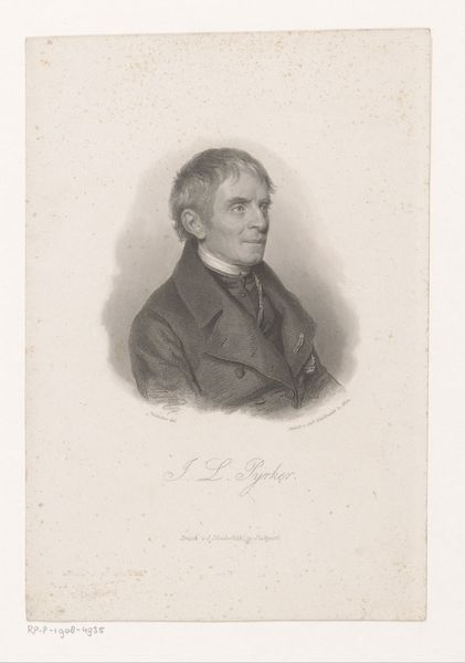 Editor: This is Josef Kriehuber's portrait of Hans Caspar Escher. It has a certain somber, almost severe, quality. What symbols or cultural meanings can we unpack from this image? Curator: Note the sitter's attire, the high collar, the dark jacket – these are symbols of bourgeois respectability. His gaze is direct, meant to convey trustworthiness and social standing. Consider, too, the absence of vibrant color; it emphasizes seriousness of purpose. Editor: So, the visual language speaks of societal roles and expectations? Curator: Precisely. Even the meticulous rendering of his features suggests a desire for permanence and remembrance. It's a visual echo of the values he likely held dear. A carefully constructed image. Editor: I never thought about portraiture carrying such weight. Curator: Indeed, these images are cultural artifacts, reflecting not just the individual, but the values of a particular time.