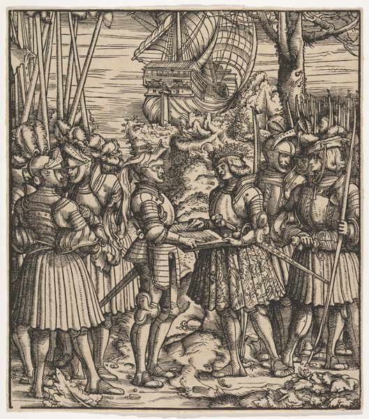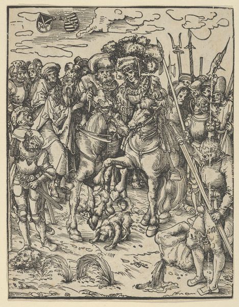 Hans Schäufelein made this woodcut, The Arrest of Christ, in the early 16th century. Woodcut is a relief printing process, where the artist carves an image into a block of wood. The remaining raised areas receive ink, which is then transferred to paper. The stark contrast and bold lines come from the nature of the wood, and the sharp tools used to cut away the negative space. Look closely, and you'll see how the dense, linear patterns create a sense of depth and drama. It's a labor-intensive process, requiring precision and control, and the finished print carries the mark of the maker's hand. The medium lends itself to the graphic, almost brutal quality of the image. Schäufelein was part of a larger printmaking industry, where such images were circulated widely. Woodcuts like this one played a crucial role in disseminating religious narratives to a broad audience. By understanding the process, we can appreciate the skill involved, and the social context in which the artwork was created and consumed.