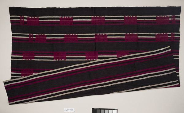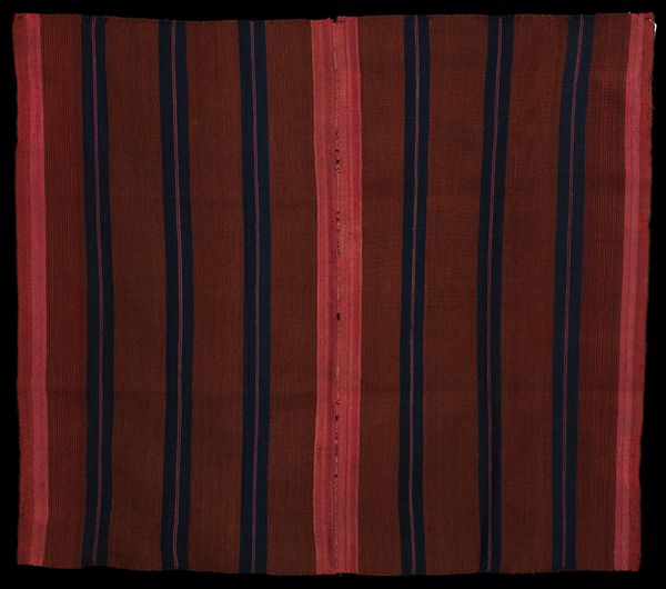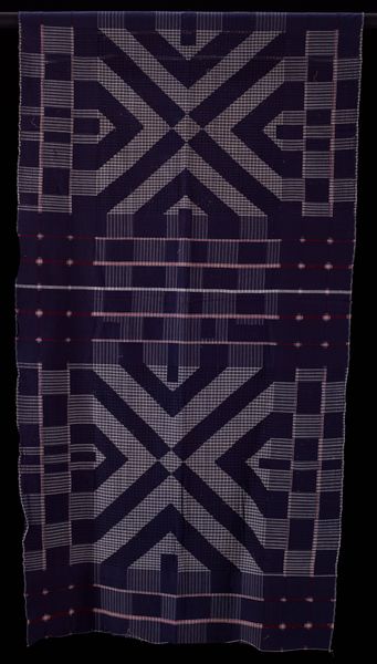 This panel was made by Nupe people. Its process is so clear; you can almost feel the rhythm of its making. The cloth is a series of stripes in brown, cream and maroon. These anchor columns of little rectangles and hourglass shapes in red, yellow, gray and green. It’s really interesting to think about how these elements work together. There’s such a sense of order overall, but when you start to look closely, the regularity breaks down. Some of those horizontal stripes are actually different widths and densities, others bleed into one another. Then those vertical shapes feel really different from one another, like the artist was interested in how slight variations can create a whole new feeling. You see something similar in the work of Gee’s Bend quilters, who turn necessity into a virtue, letting their unique circumstances guide their hands. With this piece, like those quilts, there's no perfect repetition here, just a human touch.