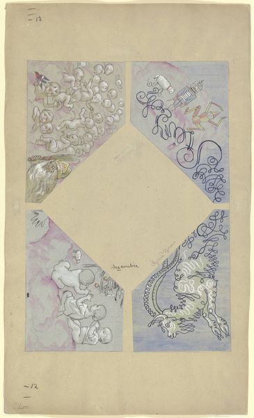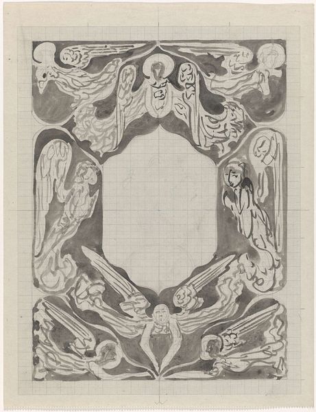 Carel Adolph Lion Cachet made this ornamental design with lions, in pen and grey ink, on grid paper. The process here feels so exposed, doesn't it? You can see the grid beneath, almost like the underpainting, or the scaffolding, for a grander design. It's like the artist is showing us his workings, unafraid of revealing the bones of the piece. Look at the variations in the ink washes, how the tones shift from almost nothing, to dense, pooling blacks. You can see the brushstrokes, tentative and searching, as if the artist is feeling his way through the image, letting it emerge from the page. The lions themselves, with their stylized manes and somewhat goofy expressions, feel more decorative than dangerous, like friendly guardians of some forgotten heraldry. This reminds me a bit of the graphic sensibility you see in some of Hilma af Klint's work. Both artists share an interest in using symbolic forms and underlying structures to access some deeper meaning, an ongoing conversation of ideas across time.