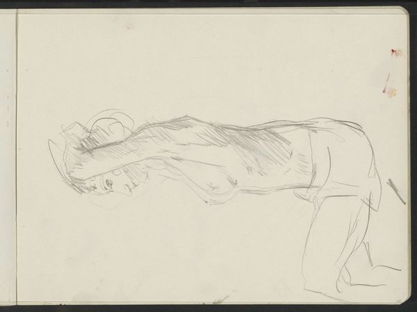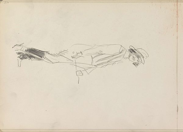 This drawing, by Isaac Israels, captures a standing woman with a hat in profile. The artwork’s energy arises from its skeletal form. It’s a network of quickly sketched lines on the off-white page, where the woman appears to be more suggested than definitively drawn. Israels utilizes the formal elements of line and composition to destabilize traditional portraiture. There is a sense of movement and spontaneity which conveys the fleeting nature of modern life. The lines are not just descriptive, but expressive, conveying a mood and suggesting a sense of transience. The absence of color and the sketch-like quality emphasize the underlying structure of the artwork. The composition challenges the viewer to complete the image, engaging us in an act of interpretation. The hat, rendered with minimal lines, serves less as a literal representation and more as a structural component. This evokes a larger cultural discourse around representation and the role of the artist in portraying reality.