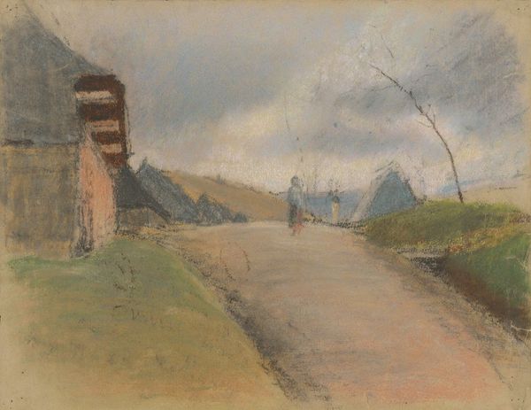Camille Pissarro captured Louveciennes, Route de Saint-Germain, in watercolor, presenting us with a landscape where the muted palette evokes a sense of quietude. The composition is structured around the curving road, which leads the eye into the depths of the scene, flanked by trees that punctuate the skyline. Pissarro’s handling of light and shadow suggests a world of fleeting moments. Here the road acts as a structural element and becomes the focal point that guides our gaze. The simplicity of the forms, rendered with delicate washes of color, belies a deeper investigation into the nature of perception. Pissarro, in this work, seems less concerned with representing the world as it is and more interested in capturing the sensory experience of being in the world. The brushstrokes function as signs that point to a broader dialogue about art's capacity to represent not just reality, but also the subjective experience of it.