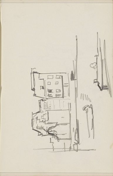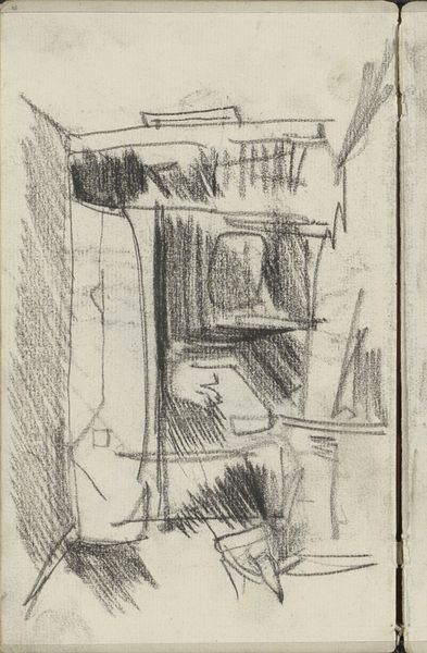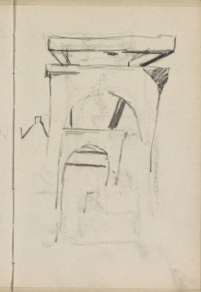 George Hendrik Breitner sketched "Damstraat te Amsterdam, gezien naar de Dam" using charcoal. At first glance, the drawing is disorienting, almost abstract. Vertical and horizontal lines intersect, suggesting the bare bones of buildings and street furniture. The stark contrast between the dark charcoal and the pale paper creates a sense of immediacy, as if capturing a fleeting moment. Breitner's sketch embodies a shift towards modern art's emphasis on form and process. His focus wasn't on photographic accuracy but on conveying the essence of urban life through a network of lines. The composition destabilizes traditional notions of perspective, flattening the image and disrupting the illusion of depth. We're left with a structure reminiscent of early cubist explorations where space is fragmented and reassembled. This drawing invites us to consider how Breitner is using a semiotic system of signs through the charcoal medium. These signs represent not just buildings but also the dynamic energy of Amsterdam. This sketch isn't merely a representation; it's an early 20th century statement about seeing and experiencing the modern world.
