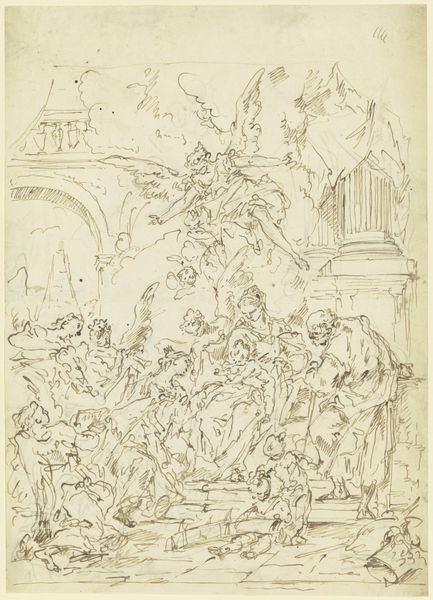 Morazzone rendered this scene of Saint John the Baptist before Herod and Herodias in pen and brown ink with brown wash. Note the figure of John, his arms outstretched, embodying defiance against tyranny. This pose echoes the ancient gesture of the orator, a symbol of truth-telling and moral courage found in classical sculptures and Renaissance paintings alike. Observe Herod and Herodias enthroned, symbols of earthly power. Thrones throughout history, from ancient Egypt to Rome, represented divine right and authority. Here, their elevated position contrasts sharply with John's humble stance, highlighting the conflict between spiritual and temporal power. Consider the psychological tension; John’s impassioned defiance versus the rulers’ cold indifference. Such a depiction of struggle engages our own subconscious understanding of moral battles, connecting us to a timeless narrative of justice and power. This potent symbolism is not static, but rather, a cyclical return of archetypes, each time colored by new cultural hues.