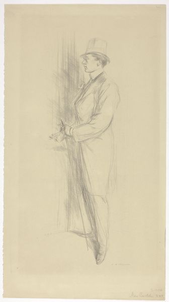 Editor: So, here we have George Hendrik Breitner’s "Studies van een lopende vrouw," dating from around 1867 to 1923. It's a pencil drawing, and the lines feel so immediate and fleeting, like catching a glimpse of someone on a busy street. There's a real sense of movement. What do you see in this piece, beyond the surface? Curator: Ah, yes! It’s as though Breitner captured a whisper of a moment, hasn’t he? I see a reflection of Amsterdam's bustling energy at the turn of the century. For me, it's about how he’s almost challenging the academic art of the time by choosing everyday subjects, particularly working-class women, as his focus. Can you sense that subtle shift in perspective? Editor: Absolutely! The sketchiness gives it a modern feel, almost like a photograph snapping a candid moment. Did he often focus on women in motion like this? Curator: He did indeed. He was captivated by the rhythm of urban life and these quick sketches were, I think, his way of understanding and capturing it. They're intimate and personal, like stolen glances from a personal sketchbook. But it’s more than just documentation; he seems to imbue these women with a certain…dignity, wouldn't you agree? Even in their hurried state. Editor: Yes, definitely dignity, and perhaps also a touch of mystery. I love how unfinished it feels; it makes you wonder about the stories of these women. Curator: Precisely! That incompleteness invites us to participate, to imagine their lives, their destinations, their inner thoughts. And that, my friend, is the beauty of a truly evocative sketch. Editor: I'll never look at a quick sketch the same way again! It's so much more than just a preliminary study. Curator: Isn't it wonderful? These glimpses into the artist's process, and the lives of those fleeting figures, can sometimes tell us more than any grand, finished masterpiece.