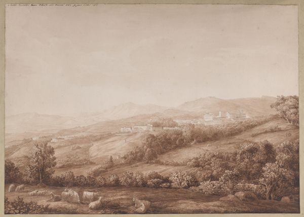 Curator: What a delicately rendered scene! This is "Mountaineous Landscape with a Church and Other Buildings," an anonymous 17th-century work, rendered in graphite on paper, here at the Metropolitan Museum. Editor: There's a stark contrast in the textures, isn't there? The wispy trees against the solid forms of the church and the distant mountains…it creates a captivating visual tension. Curator: Absolutely. These landscape drawings became increasingly popular during the 17th century, mirroring the rise of a mercantile class that increasingly looked towards idealized representations of nature as status symbols and aesthetic fulfillment. Prints like this offered broader access to landscape imagery, moving art outside ecclesiastical or aristocratic circles. Editor: The use of line is interesting here, isn’t it? Notice the almost frantic hatching to establish shadows and volumes versus the smoother tones defining the sky. It’s as if the artist sought to mimic atmospheric perspective purely through texture. Curator: It speaks to an evolving understanding of space and how it's visually interpreted. I see this not only as observation of landscape but a reflection of societal changes. Art production and distribution was reshaped by emergent commercial networks. Images reproduced on paper held value in their accessibility and ability to travel and educate a broader segment of society. Editor: The eye is directed carefully—first to the detailed, grounded structures, leading up to the ethereal mountain range in the distance. One is invited to mentally journey into an unfamiliar space and consider our scale as viewers relative to this topography. Curator: I agree. Consider how this relatively affordable art contributed to an emergent visual culture, shaping not just taste but potentially civic identity through shared visual experiences. Editor: Seeing the church tower nestled into that mountain range, in the end it does present nature and human achievement, maybe, not as opponents but as components of something complete. Curator: Precisely! It shows an increasingly shared culture, built with the images circulating between viewers, then and today.