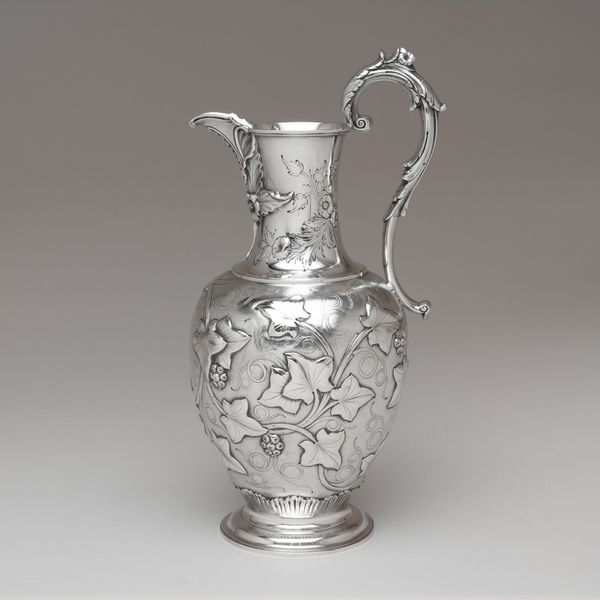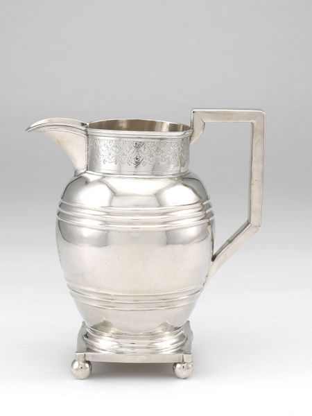 This elegant pitcher was crafted in Philadelphia by R. & W. Wilson, active from around 1825 to 1846. During the 19th century, the burgeoning American middle class saw a rise in the demand for refined household objects, a signifier of taste and social standing. Silverware, like this pitcher, became a popular commodity. R. & W. Wilson, as a prominent silversmithing firm, played a key role in shaping this material culture. They produced high-quality pieces that catered to the aspirations of upwardly mobile families. Philadelphia, at the time, was a major center for artisanal production and commerce. The city's economic prosperity and sophisticated urban culture made it a fertile ground for businesses like R. & W. Wilson to flourish. Understanding the social and economic context surrounding the production of silverware like this gives us a sense of the values and aspirations of the time. Trade directories, inventories, and other historical documents can provide insights into the market for luxury goods and the role they played in shaping social identities.