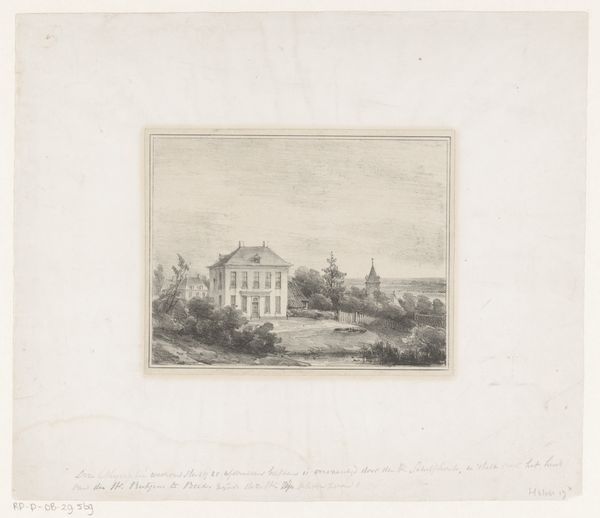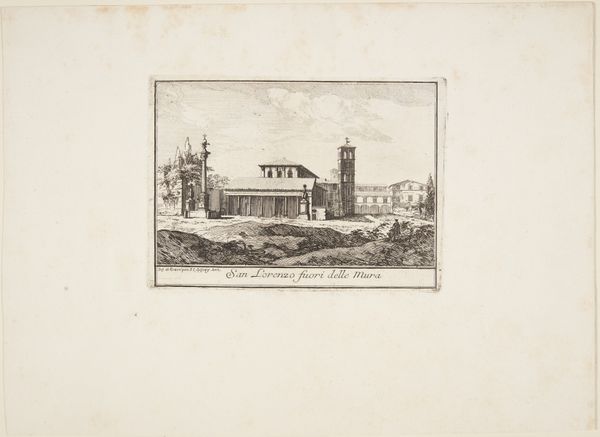 Curator: Ah, here we have "Italian Landscape with a Roman Church," crafted in 1792 by Jacob Wilhelm Mechau. This piece, an etching really, feels like a whisper from a bygone era. What's your immediate take? Editor: My first impression is stillness. The etching's delicate lines create a world suspended between reality and memory, with the church tower anchoring a sense of timelessness. The figures walking along seem somehow separate from the building they might be visiting. Curator: Timelessness, yes, that's precisely it! Mechau really captured that Neoclassical yearning for an idealized past. The Roman church isn’t just a building, it’s a symbol of permanence amidst the flux of life. I’m always struck by the light. See how it grazes the buildings and leaves those strolling figures almost swallowed by shadow. Editor: The interplay of light and shadow certainly enhances that sense of introspection. The tower almost vanishes into the dense grove of trees – I wonder if that merging symbolizes a cultural memory slowly becoming absorbed into the natural world? There's a cross right on top, drawing all your attention to the place. Curator: Absolutely. It invites contemplation on the Church's role as a keeper of collective memory. But also consider Mechau’s technique here. The etching allows for such incredibly fine detail—look at the subtle gradations in the sky, the way he suggests texture with the smallest of lines. I like to imagine the effort involved and connect to it across centuries. Editor: The scale too adds to that. A print demands closer inspection, inviting a more intimate relationship with the image. These architectural forms stand almost stark against the organic forms. A clear statement, really, of the imposition of ordered structure over a chaotic reality. Curator: It certainly speaks to the Neoclassical project, doesn't it? Finding order, harmony... perhaps even attempting to impose it where it might not naturally exist. Although, perhaps nature eventually wins. Editor: In the long run, perhaps, the symbol overtakes all of reality as well. Looking at it, I find it both compelling and a little melancholic; a poignant reminder of time's passage and the enduring power of symbols to transcend generations. Curator: Melancholy is the right word, a reflective atmosphere lingers. Looking at Mechau's etching is, in a way, about connecting with our own fleeting place within the grand sweep of time, isn’t it?