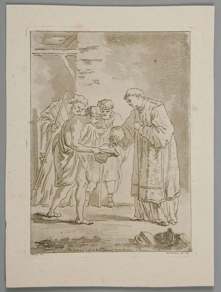 Adam von Bartsch created this etching of four men in "oriental costume" in 1795. These figures invite us to consider the European fascination with the "Orient" and the politics of representation that accompanied it. Fashionable dress, particularly that of non-Europeans, was a common theme in the graphic arts of the late 18th century. These images often reflected and reinforced existing social hierarchies and power dynamics. Bartsch, an Austrian artist working in Vienna, would have been acutely aware of the Ottoman Empire and its complex relationship with Europe. The artist's choice of etching, a printmaking technique, suggests a desire for reproducibility and wide dissemination of the image. The image speaks to issues of cultural appropriation and the construction of identity through dress. By consulting sources such as fashion plates, travel literature, and diplomatic records, we can gain a deeper understanding of the cultural context in which this etching was produced and its role in shaping European perceptions of the "Orient."