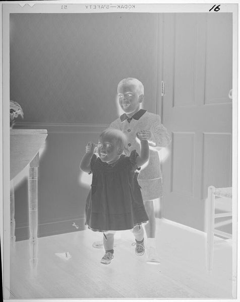 This image, by Paul Gittings, is an eight by ten inch print of a little girl in a bonnet. It's an odd photo, and it seems to be a negative print, which, for me, pulls the image into abstraction. I'm interested in the way Gittings is playing with surface texture here. We can tell this is a photograph and not a painting through the flatness of the space depicted. The dark shadows which render the little girl three-dimensional also emphasize the artificiality of the composition. The girl is holding a doll with both hands, it looks almost like she is praying. The doll’s head is lit up as though it is a lightbulb. It's as if the light is coming from within the doll and reflects off the surface of the child's face. I wonder if Gittings knew the work of someone like Diane Arbus, who also found ways to expose the artificiality of portraiture while evoking an emotional response. Both artists leave space for many interpretations.