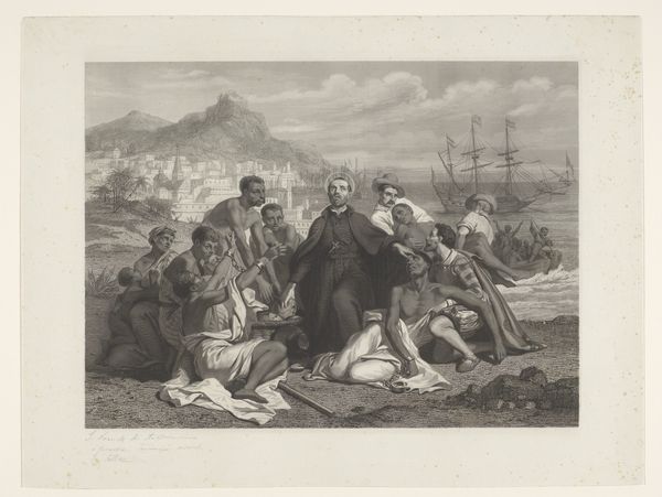 Curator: So much swirling energy here! At first glance, I feel a frenetic chaos, but maybe even tinged with Romantic heroism? Editor: Precisely. Here we have "Franse soldaten in gevecht met de vijand," or "French Soldiers in Combat with the Enemy," created between 1828 and 1829, courtesy of Auguste Raffet. Notice the dynamism he coaxes from the graphite. Curator: That flurry of strokes…almost overwhelming. The tight compression of figures near the foreground seems strategically posed to catapult my eyes into a background filled with almost indistinct shadowy violence. Are those even people back there? More like a churning dust cloud spitting out bayonets! Editor: Note the artist's effective use of line, characteristic of Romanticism. While he captures an active scene, the lines are remarkably controlled. A mass of men moves as one organic thing, their identities almost swallowed up by "History" itself! Curator: It’s an organized chaos, which strikes me as a key aspect of the work. The lines and composition, while turbulent, still impose an order upon this maelstrom, so it's not just raw unbridled emotion. Editor: Quite. There is a discernible foreground, middle ground, and background. Observe how the formal choices affect the piece's message. Also, let us not dismiss the medium: it's a drawing and print. Curator: It's like Raffet is reminding us that even in the heat of battle, certain structures are not easily demolished—discipline, hierarchies. But still...I feel a definite pull. A desire to know more, understand better what these figures were struggling for—a real testament to the drawing's narrative power. Editor: Indeed. His formal rendering transmits so much history and humanity in the throes of... events. Curator: Definitely. It has something very immediate, in terms of the emotional conveyance of it. Editor: Yes, that feeling when lines meet, a battle joins. A powerful reminder from history.