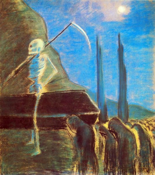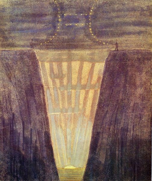 Mikalojus Konstantinas Ciurlionis made this mystical painting, Scorpio, with tempera on paper, but we don't know when. The whole thing is awash with this dreamy, muted palette, all grays, blues, and purples, like a hazy memory. The layers of paint! They're so thin, like watercolor washes, building up to create depth. Look at the way the verticals dissolve into the sky, they give this sense of infinite space. And that central structure, is it a building, a monument? It's adorned with celestial motifs—stars, constellations, and of course, the scorpion itself. The way Ciurlionis layers these symbols is incredibly fascinating. Each mark, each brushstroke, contributes to the overall mood, a kind of spiritual yearning. You can see echoes of Symbolism, maybe even a touch of Munch in that atmospheric intensity, but Ciurlionis is doing his own thing. This piece is a reminder that art is always a conversation, a dialogue across time and space, embracing the mysterious and multiple interpretations.