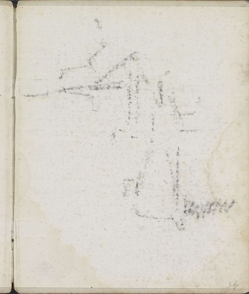 Curator: Well, this seems like the perfect time to delve into "Figuren in een landschap met bebouwing," or "Figures in a Landscape with Buildings," dating back to 1917 by George Hendrik Breitner. It's currently housed here at the Rijksmuseum. What’s your initial impression? Editor: Honestly? It feels like a half-remembered dream, all fleeting lines and suggestive shapes. There’s a real rawness here, a kind of vulnerability. It’s like catching Breitner in a moment of pure, unedited thought. Curator: Absolutely, I agree. Breitner composed this scene using pencil, with distinct strokes evoking Impressionism. I'd like to elaborate on how the materiality of the drawing, specifically the pencil on paper, lends itself to the immediacy of the captured moment. It embodies an exceptional example of how an artist communicates place and being using suggestion and atmosphere. Editor: You know, I love that you mentioned "immediacy." It strikes me how different this feels from some of Breitner’s more finished pieces. I’m wondering what these "figures" represent – are they individuals, communities, or mere markers of human presence? Curator: That’s a compelling point. The way Breitner layers the pencil strokes certainly hints at depth. Note how the light appears to be coming from the left, illuminating a jumble of forms, giving us a tangible texture without ever truly solidifying what they are. Editor: I like this work for its refusal to be pinned down. You feel a certain mood or a sense of being present with a creative mind, sketching its way through landscape and life! It gives off that feeling, to me. Curator: Agreed, agreed. A poignant conclusion to an engaging glimpse into Breitner's process! Editor: Very poetic, indeed.