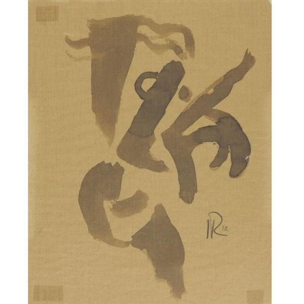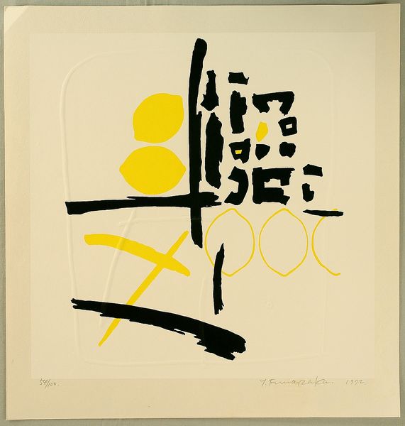 Editor: Taiko Yamazaki's "Dwelling," held at the Harvard Art Museums, is a work on paper that feels both ancient and modern. I'm curious, what can you tell me about the process of creating something like this? Curator: Considering Yamazaki’s technique, we see a direct lineage to traditional calligraphy while challenging it. The ink, the brushstrokes, the very act of mark-making—it's all a performance of labor. How do you think its presentation affects our reading of it? Editor: I think the framing almost elevates the work, contrasting with the apparent spontaneity of the brushstrokes. It makes you think about value. Curator: Precisely. The tension between spontaneous action and deliberate display forces us to confront how art is commodified and consumed, even when referencing tradition. It's a fascinating interplay. Editor: That gives me a lot to think about. Thanks!