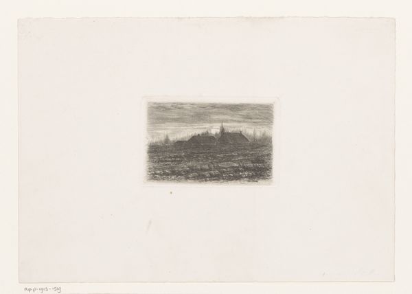 Jerôme Tuyttens created this small landscape, a ‘village on the water’ in monochrome print on paper. The image is achieved through the graphic art technique known as etching. The etcher coats a metal plate with a waxy, acid-resistant material. They then scratch off the coating with a pointed tool where they want lines to appear in the finished piece, before immersing the plate in acid, which eats into the exposed metal. Finally, the plate is inked and printed onto paper, resulting in a mirror image of the design. The beauty of etching lies in its capacity to capture fine details and subtle tonal gradations through careful manipulation of line and texture. This process allowed Tuyttens to conjure a landscape, complete with dramatic clouds and a distant village, all within a small format. Thinking about the amount of work involved, from the preparation of the plate, to the acid etching, inking, and printing, we start to see the depth of labor and the artistry of the printmaking craft.