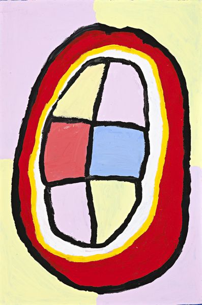 Editor: This is "Hunting Ground at My Father's Country," painted in 2005 by Sally Gabori. It’s an acrylic on canvas. I'm really struck by the boldness of the shapes and the unusual color palette. It feels very... powerful, but also a bit mysterious. How do you interpret this work? Curator: Gabori's paintings are powerful acts of cultural reclamation. Consider that she began painting in her 80s, depicting the landscape of Bentinck Island, her ancestral home. This painting isn’t just a pretty picture, but a visceral map – a cartographic assertion of Indigenous presence and knowledge violently disrupted by colonial forces and climate change. What do you think of when you hear the title “Hunting Ground”? Editor: Well, obviously it suggests a place to find food. But looking at these almost abstracted shapes... are we meant to see something beyond the literal act of hunting? Curator: Exactly. Think about what happens when a culture is forcibly displaced, how knowledge is transmitted and eroded. These shapes, colours, and compositions carry coded meanings, a visual language almost resisting erasure. Can you see any familiar shapes? Does anything about the design of the painting speak to themes of environmental concerns to you? Editor: Now that you mention it, I can see almost bird-like shapes, but abstract of course. Knowing that she painted this later in life after displacement makes it seem incredibly poignant. It's not just a landscape; it's a statement. Curator: Precisely. It challenges the traditional Western canon and inserts an Indigenous perspective, reminding us of the enduring legacy of dispossession and the vital need to listen to marginalized voices in art history. It serves as both documentation and celebration. Editor: I didn't see all of that at first. I was focused on the aesthetics, the colors, and lines. Thank you, I really learned so much today. Curator: Indeed. Art often hides these stories, waiting to be uncovered.