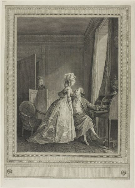 Curator: Welcome. Here we have "Portret van Calpurnia Pisonis", dating from 1675 to 1711. It’s attributed to Pieter Schenk and is a print housed here at the Rijksmuseum. Editor: My first impression? Serene, almost staged. There’s a careful arrangement of fabrics and a balanced, if somewhat cool, palette. Is it meant to convey power or vulnerability? Curator: Indeed, the composition relies heavily on contrasting textures – the rigid lines of the architectural elements offset by the fluid drapery. Semiotically, the classical backdrop alludes to the virtues of antiquity. What is conveyed in its overall structural syntax? Editor: I find it interesting how Calpurnia is presented. Consider that Pieter Schenk lived a good deal after her time. In art history, powerful women were seen as a model of governance or cautionary symbol regarding excessive power and dangerous desire. Her adornments and position seem less about historical accuracy and more about the statement of empire. Curator: The technique, engraving, is integral here. Notice how line is not merely representational but constitutes the very form. See the way hatching creates shading that gives weight and dimension to her figure and emphasizes her regal adornments. These structural details contribute to the power of the portrait. Editor: But consider what the Rijksmuseum and institutions like it communicate by displaying an image like this centuries after its creation. We lend it value, we allow it to be viewed. Calpurnia wasn’t Dutch; there is no colonial connection that validates display. Do you believe she simply serves as a decorative marker of empire, a general European aesthetic of power? Curator: Perhaps. Through a formalist lens, however, the image creates an atmosphere that stands separate from our own historical context. In the balanced orchestration of forms and in the subtleties of the engravings is expressed a beauty. Editor: Ultimately, even in these structured elements you describe, the impact stems from its representation of an elite figure amidst empire, a view afforded and perpetuated by institutions such as this. It gives us all something to think about. Curator: Indeed. Thank you for considering the print with us.