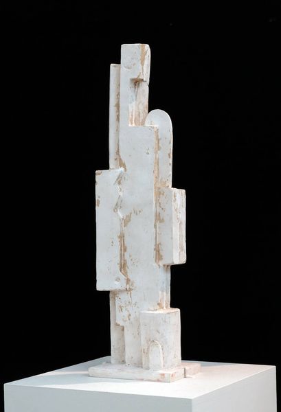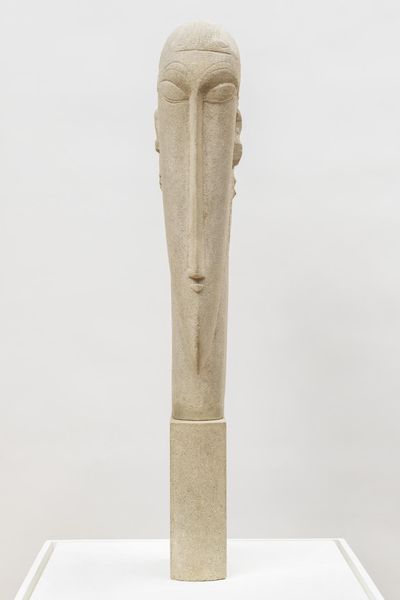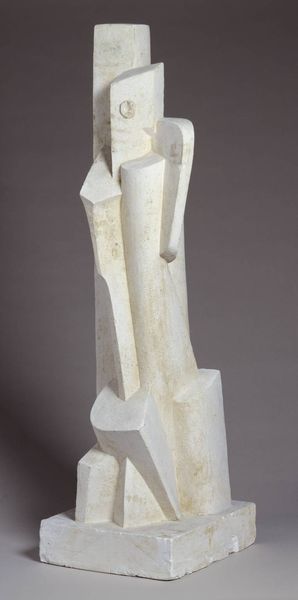 Curator: Let's turn our attention to this striking sculpture by Jacques Lipchitz. It's simply titled "Sculpture" and resides here at the Tate. Editor: It feels…almost like a monument, but stripped back, abstracted. A ghost of a monument, maybe? Stark and upright. Curator: Lipchitz explored Cubism and abstraction, moving away from direct representation. You can really see it in his deconstruction of form here. What does that mean for public reception, I wonder? Editor: I see the influence. It's as if the stone itself is wrestling with an idea, a feeling trying to break free from the solid block. There is a lot of tension here. Curator: Absolutely. It's a powerful example of how Lipchitz pushed the boundaries of sculpture. Editor: It makes me think about the possibilities of art and how different views may change or affect it.