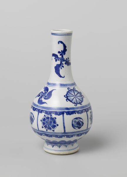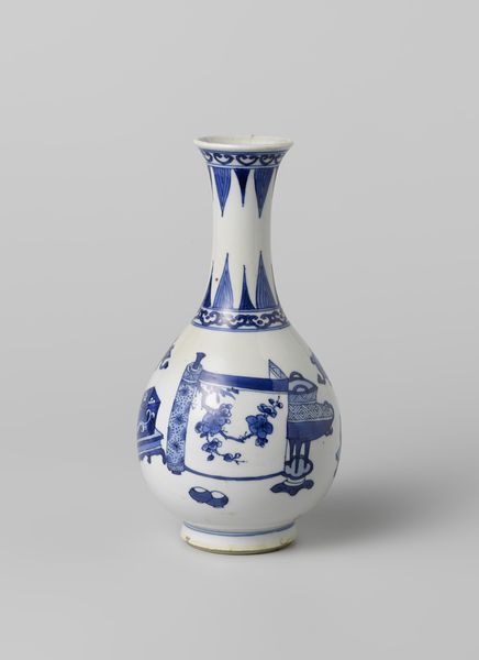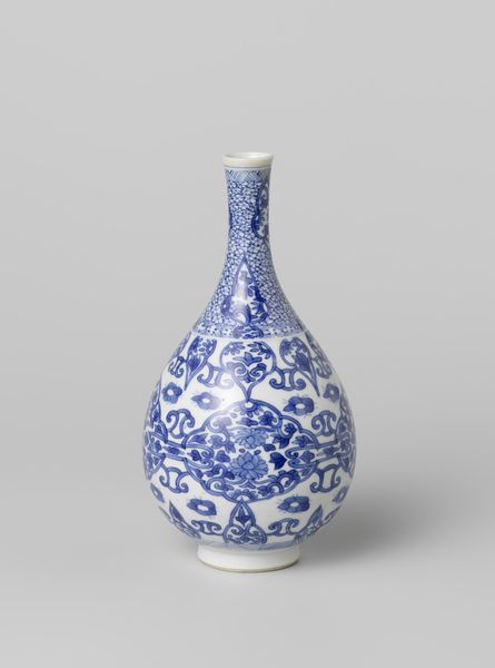 This pear-shaped bottle vase with auspicious symbols and petal borders was created by an anonymous artist in an unknown year. The blue and white design is a beautiful example of a popular style of the time. It's easy to see the vase as merely decorative, but it's also a window into the complex exchange of ideas and goods between cultures. Porcelain, often associated with China, became a coveted commodity in Europe, driving trade and influencing artistic styles. The auspicious symbols adorning the vase are not accidental, they reflect a culture deeply rooted in beliefs about luck and prosperity. These symbols weren't just aesthetic choices but were meant to bring good fortune into the home. Even the act of placing flowers in the vase connects to deeper cultural practices around nature, beauty, and spirituality.