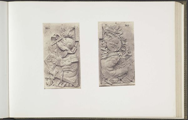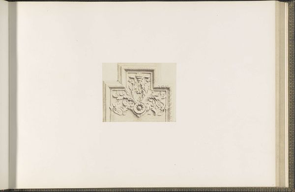 Edouard Baldus created this photograph of Auguste Pauffard's plaster model for a ceiling decoration in the Louvre. The interplay of light and shadow, achieved through the photographic medium, enhances the three-dimensional qualities of the sculpture. The carefully arranged composition draws the eye to the detailed figures and floral elements, set within a square grid. The photograph captures the transition from classical sculpture to its photographic representation, raising questions about authenticity and reproduction. Photography, here, serves not just as documentation but as a medium that interprets and transforms the original art form. In this context, Baldus's photograph functions as a semiotic system, where the sculptural relief is translated into a two-dimensional image, prompting a reconsideration of form, representation, and our perception of art itself.