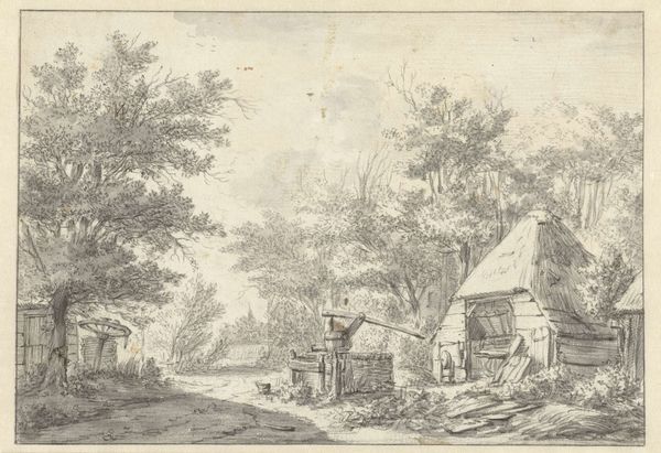 Curator: Standing here, we're looking at Hendrik Schwegman’s “Farm on the Water and Fisherman in Boat,” dating back to 1786. It's an etching, ink on paper, currently held in the Rijksmuseum. Editor: It’s evocative. Bleak, almost, in its stillness. The muted tones really emphasize the solitude of that waterside dwelling. You can almost feel the damp air. Curator: Genre paintings such as these offer us glimpses into the daily life and values of the period. The landscape and the economic conditions, they influence and are influenced by these humble depictions. This one aligns strongly with the conventions of the Dutch Golden Age landscapes. Editor: The focus on ordinary life does democratize art to a degree. But how "ordinary" was this really? Whose perspectives were centered, and whose were deliberately excluded from these depictions of quaint rural life? It's quiet—too quiet, perhaps? Where are the voices of those who truly labored to build this landscape? Curator: The Dutch Golden Age coincided with an era of massive global trade and colonial expansion. Do you think the detailed execution we see in Schwegman's prints, and the market for them, directly relied on those trade routes and the wealth derived from the colonies? Editor: Absolutely. Landscapes weren't just pretty scenes. They also symbolized ownership, national identity, and of course, obscured some harsh colonial realities. This image may seem innocuous, a quaint, tranquil waterside moment but whose tranquility was it really and at whose expense? It certainly seems like it lacks a social conscientiousness to the time and, frankly, lacks depth. Curator: That reading is spot-on. The very act of representing these scenes became intertwined with societal power structures and evolving political narratives. How can museums present the work and give insight to our patrons, acknowledging not just the work but the world around the work? Editor: Exactly! Bringing in contemporary voices—artists, activists, theorists—can really enrich the historical narrative, push beyond the expected, and reveal the complex social fabric that made this image possible. That's the goal to give all who gaze upon this to truly see beyond the beauty. Curator: Absolutely, reframing it is a social responsibility for museums. Editor: Precisely. It allows us to engage honestly with the complexities of history.