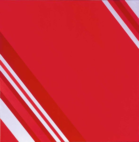 Curator: Here we have an untitled piece by Ellsworth Kelly, part of the Tate Collections. It features a vibrant red form against a white background. Editor: My immediate response is one of tension. The curve suggests movement, almost as if the red is encroaching, or perhaps retreating? Curator: Kelly's work often plays with positive and negative space, pushing the boundaries of abstract painting. The stark contrast certainly creates visual dynamism. Editor: Absolutely. Red is primal; it can symbolize passion, anger, even danger. But the clean lines and simplicity suggest control, a tempering of that raw energy. Perhaps the white space is a symbol of purity or neutrality? Curator: It's interesting how the lack of a definitive title invites so many interpretations. Kelly was interested in the objective qualities of form and color, often drawing inspiration from the everyday. Editor: It is a very powerful study in form, color, and balance. I am leaving this piece pondering the push and pull of opposing forces. Curator: Indeed, it's a testament to the power of simplicity in provoking thought and feeling.