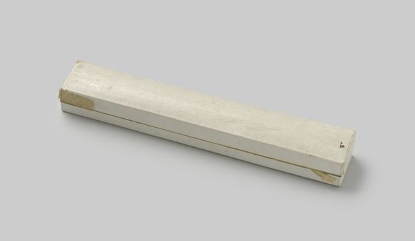 This elongated, tapered box with a loose lid, crafted from cardboard, was designed by de Vries & Vigier to house an umbrella. While seemingly mundane, this object speaks volumes about shifting societal norms, gender roles, and class distinctions. The umbrella itself, initially a symbol of status and luxury, evolved into an everyday accessory. It served as a protective shield and a fashion statement. In Victorian society umbrellas were heavily gendered, with distinct styles marketed to men and women. This box subtly acknowledges these distinctions, offering a tailored container for this ubiquitous yet personal item. Think about the umbrella as an extension of the self, providing protection and reflecting individual style and social standing. The floral motif on the box might imply the feminine use of the umbrella it contains. It's a quiet reminder of the intimate relationship between objects, identity, and the social rituals of daily life.