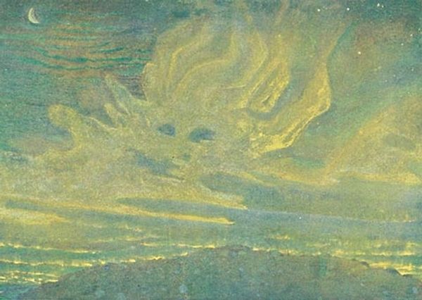 Nicholas Roerich made "Kiss the Earth" using what looks like watercolor, and it's all about process, about how the paint moves and settles. I love how Roerich isn't trying to trick us into thinking this is real. The colors are muted – earthy browns and tans – and the white is opaque. There's a stark, horizontal slash of white, bisecting the picture. Maybe it's a river or a snow-covered field, but it’s also just paint on paper. Look at the way the brown washes bleed into each other, like stains, and the scumbled texture in the foreground. It feels so immediate, like he's capturing a fleeting moment, a memory of a place. Roerich reminds me of someone like Agnes Martin, not in terms of style, but in their shared interest in the spiritual, the meditative quality of simple forms and colors. It’s not about what you see, but how you feel. It's about embracing ambiguity.