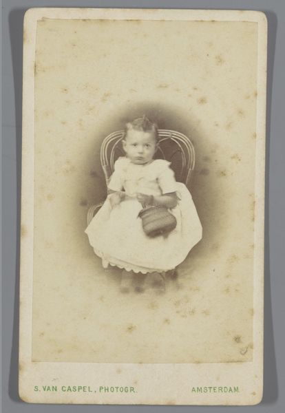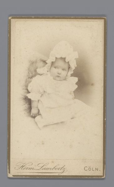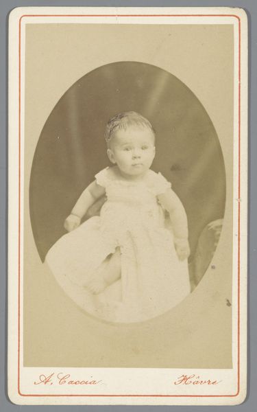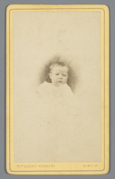 This is an albumen print made by Albert Alfred Warnery, probably in France, somewhere between the 1870s and 1890s. What's most striking is how this small portrait indexes larger shifts in 19th-century society. Photography democratized portraiture, enabling the middle classes to participate in a ritual that had once been exclusively for the elites. The rigid pose and elaborate chair speak to the self-consciousness that was common in early portrait photography. The studio of Albert Alfred Warnery was located in Elbeuf, a town with a rich industrial history, particularly in textile production. Photography studios in industrialized towns like Elbeuf played a crucial role in shaping local identities. Images like this one offer valuable insights into the aspirations and social values of the emerging middle class. The social historian can read such images for clues about family structure, gender roles, and even the rise of consumer culture. More research into the studio's records might reveal the sitter’s name. This would further illuminate our understanding of the photograph's significance.